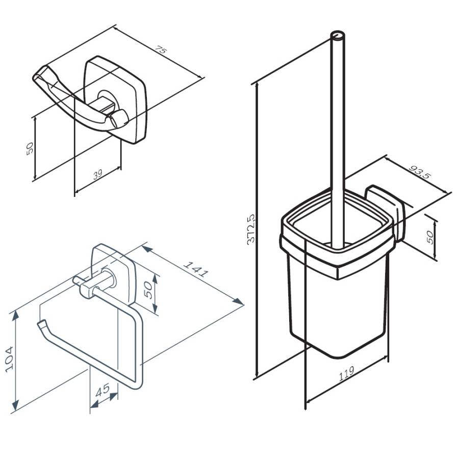 Занимая минимум места в пространстве аксессуары Gem помогут рационально организовать место для хранения и станут стильными акцентами в интерьере. В комплекте: двойной крючок для полотенец держатель для туалетной бумаги стойка с туалетной щеткой._x000D_
