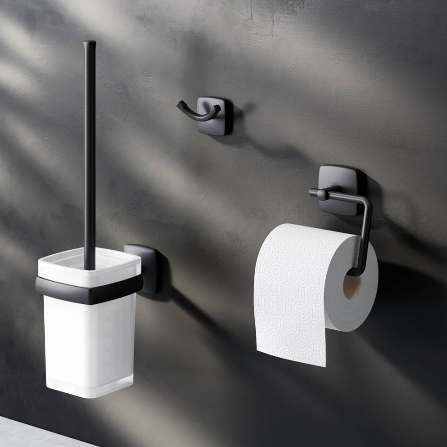 Дерзкая и стильная коллекция Gem в черном цвете превращает даже простые аксессуары для ванной комнаты в классные дизайнерские детали которыми хочется пользоваться каждый день. Форма аксессуаров повторяет линии смесителей коллекции подчеркивая единую концепцию дизайна._x000D_