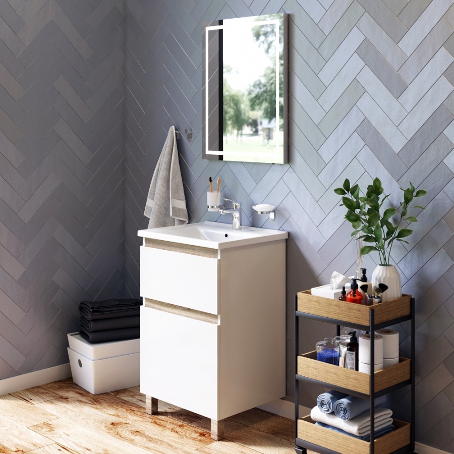 Большое зеркало с LED-подсветкой идеально для нанесения макияжа. Механический скрытый включатель сохраняет поверхность зеркала чистой.