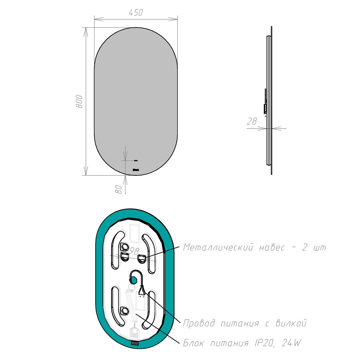 •Габариты (ШГВ): 450х30х800 мм;