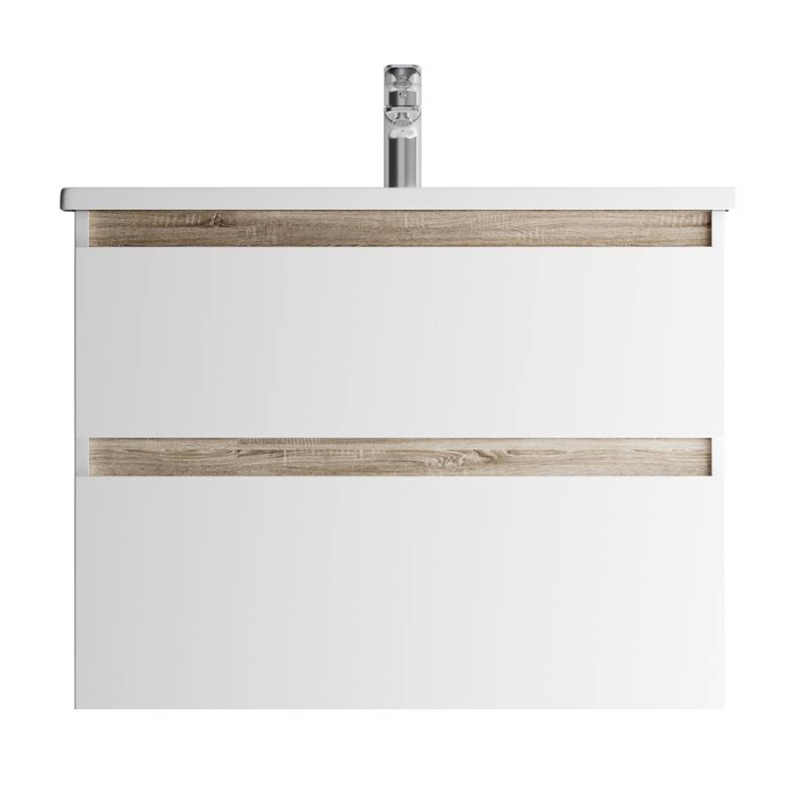 цвете Anthracite и имеет противоскользящее покрытие. Встроенная керамическая раковина белоснежного цвета оснащена специальным бортиком для защиты от пролива воды за мебель.
