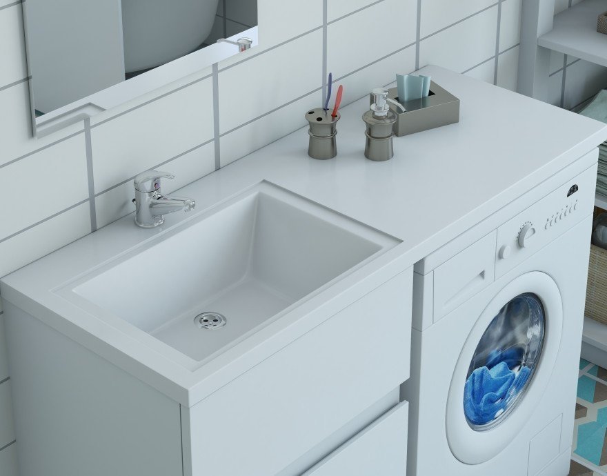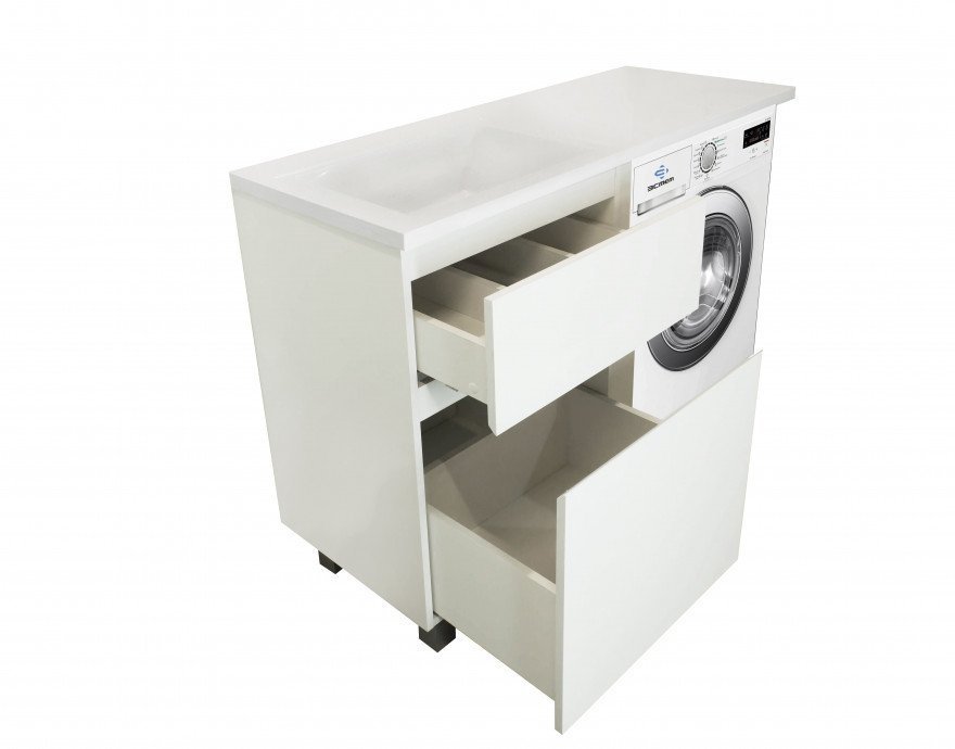 Мебель выполнена из влагостойкого ЛДСП и качественного MDF с использованием эмали RENNER (Италия). Ящики снабжены системой плавного закрывания. Для мебели используется фурнитура BLUM (Австрия).