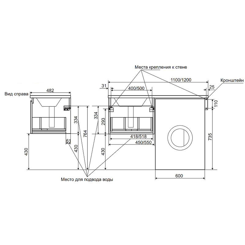 | Подъем при весе до 500 кг | 800 | 400 |