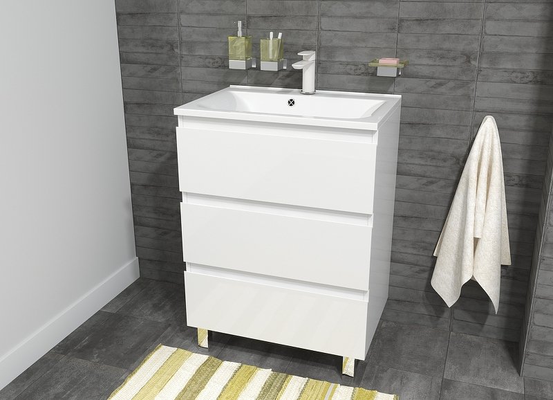 Мебель выполнена из влагостойкого ЛДСП и качественного MDF с использованием эмали RENNER (Италия). Ящики снабжены системой плавного закрывания. Для мебели используется фурнитура BLUM (Австрия).