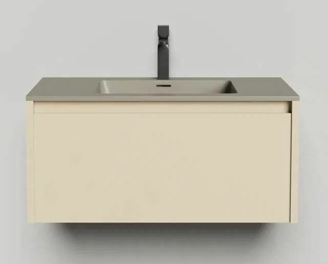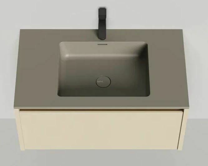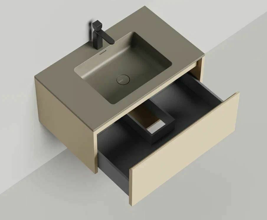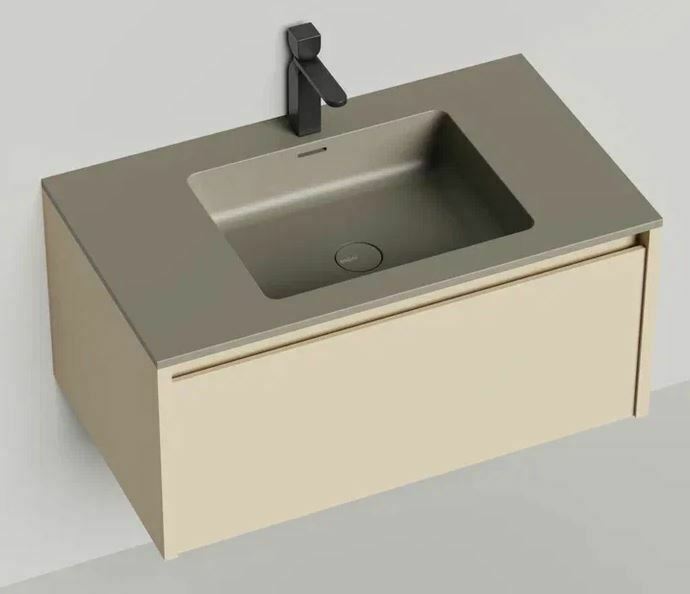 Тумба DOMINO, дополненная столешницей COSTA из каменного литья S-Stone, гарантирует практичность и простоту ухода.