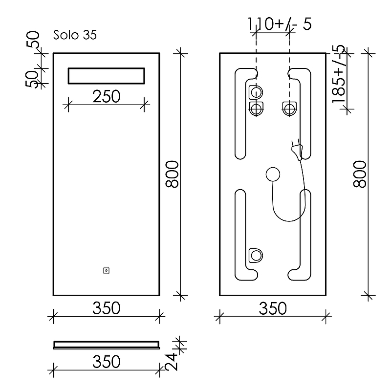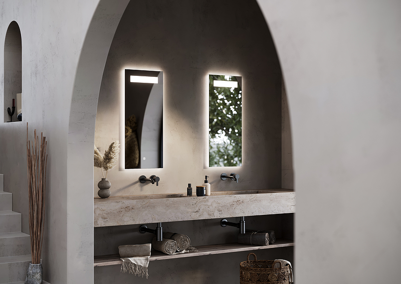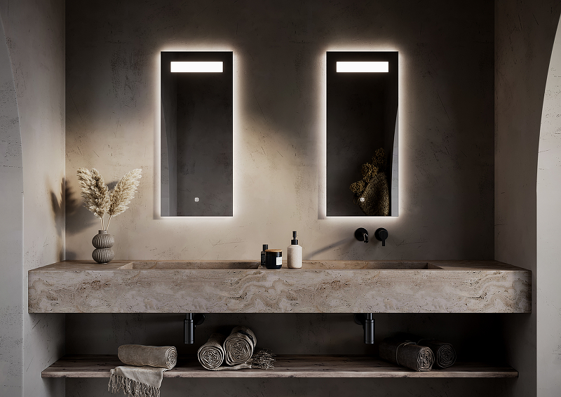 LED подсветка 4000К, сенсорный выключатель внизу на зеркал , пластиковый светопропускающий короб |