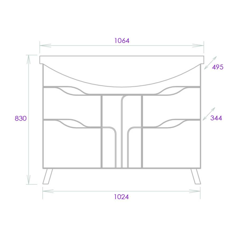 Размеры тумбы без учета раковины и ножек: 102x34x68 см.