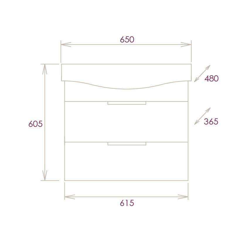 Размеры тумбы без учета раковины: 61х36х50см.