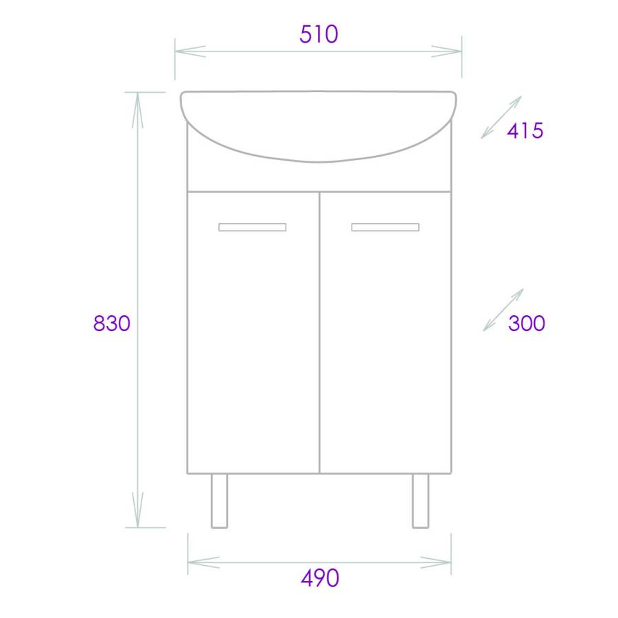 Размеры тумбы без учета раковины и ножек: 49х30х68см.
