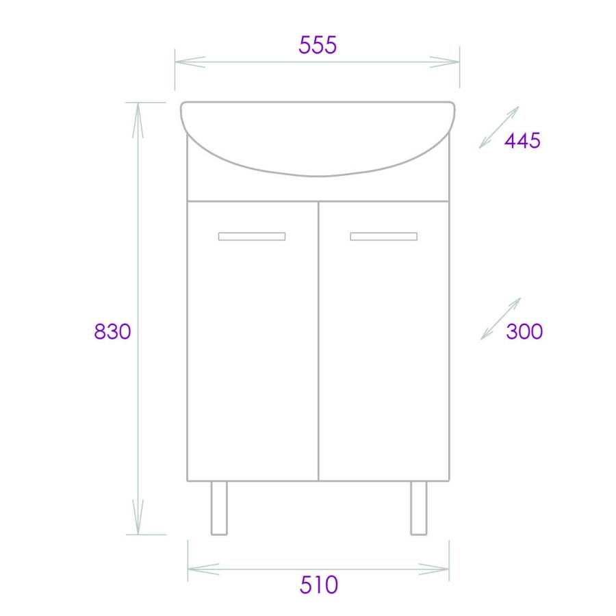 Размеры тумбы без учета раковины и ножек: 51х30х68см.