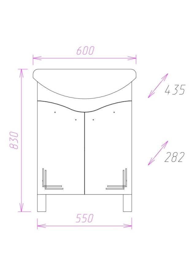 Размеры тумбы без учета раковины и ножек 55х28х68 см.