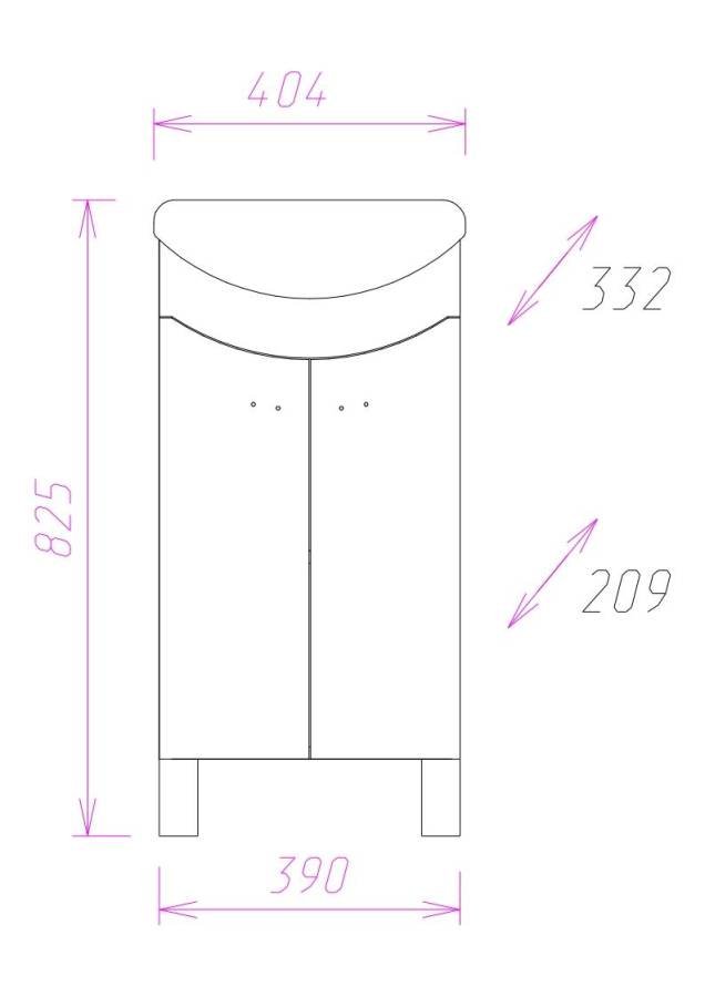 Размеры тумбы без учета раковины и ножек: 39*21*68 см.