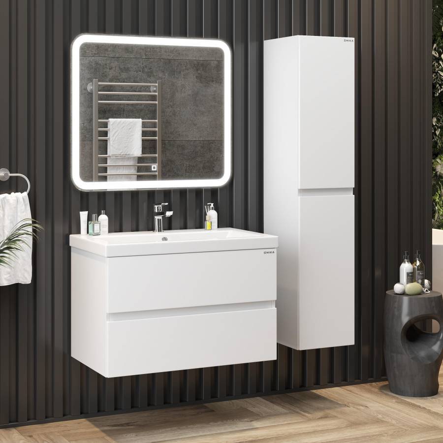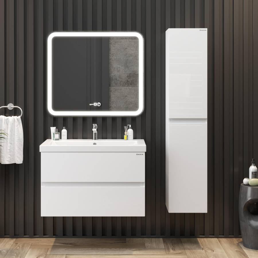 Тумба выполнена из ЛМДФ и ЛДСП, покрытых эмалью, устойчивой к механическим воздействиям, перепадам температур и высокой влажности.