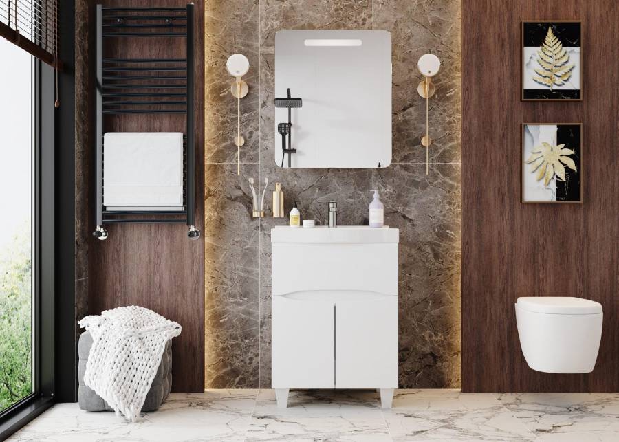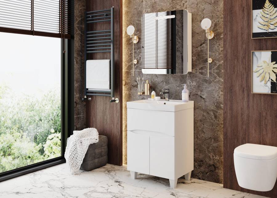 Шкаф-зеркало выполнен из ЛДСП, устойчивой к механическим воздействиям, перепадам температур и высокой влажности.