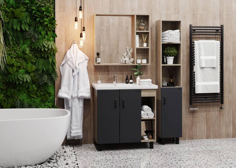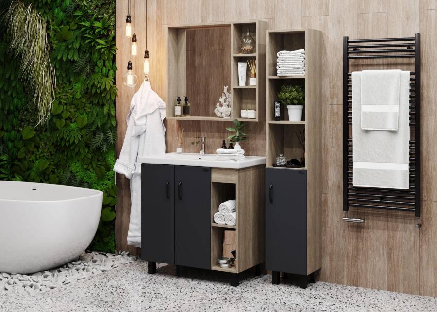 3 открытые полки обеспечивают быстрый доступ к часто используемым аксессуарам, место под зеркалом создано для косметических средств или декоративных элементов.