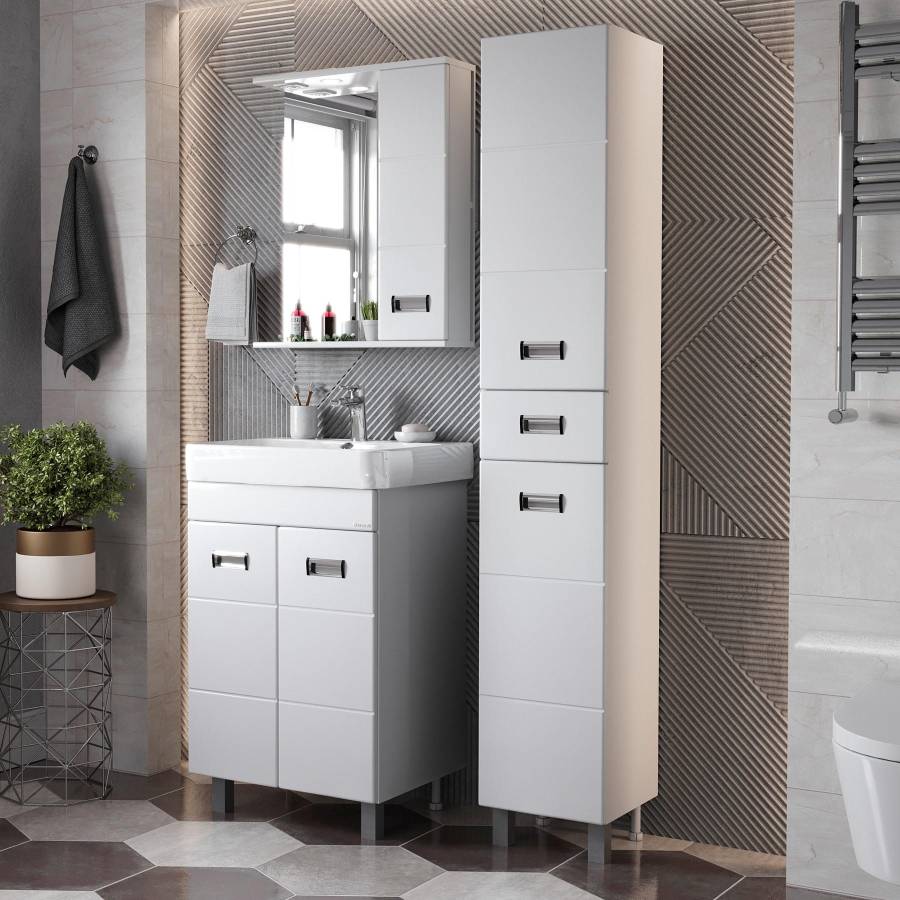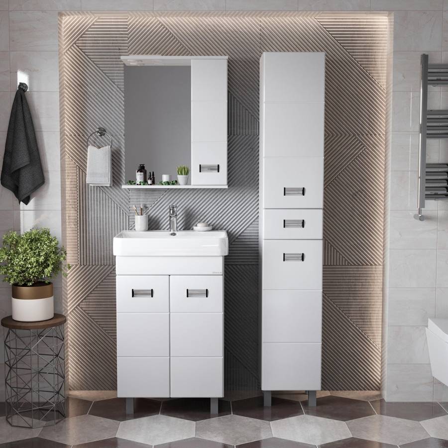 Глянцевый белый цвет фасада, ненавязчивая горизонтальная фрезеровка, врезные хромированные ручки и аккуратная лаконичность - все это позволяет коллекции Балтика стать центральным звеном интерьера ванной комнаты.