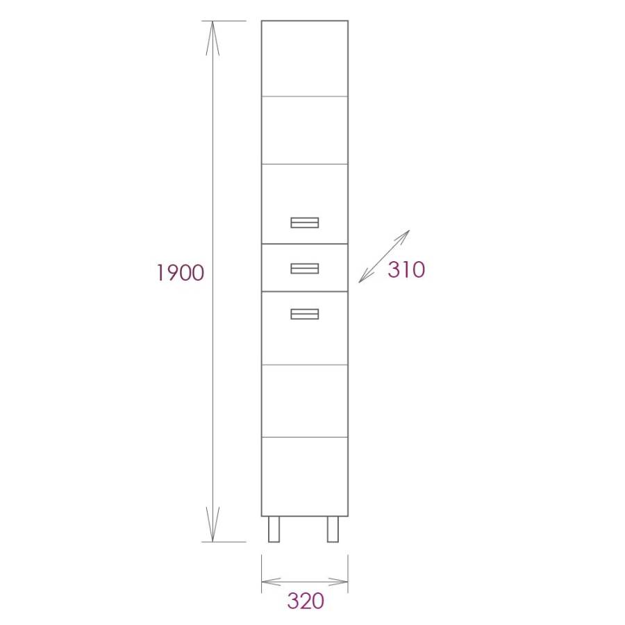 Удобный ящик с направляющими полного выдвижения посередине пенала и два больших отделения, разделенные горизонтальными полочками, за распашными дверями с механизмом плавного закрывания - отличное место для хранения необходимых вещей.