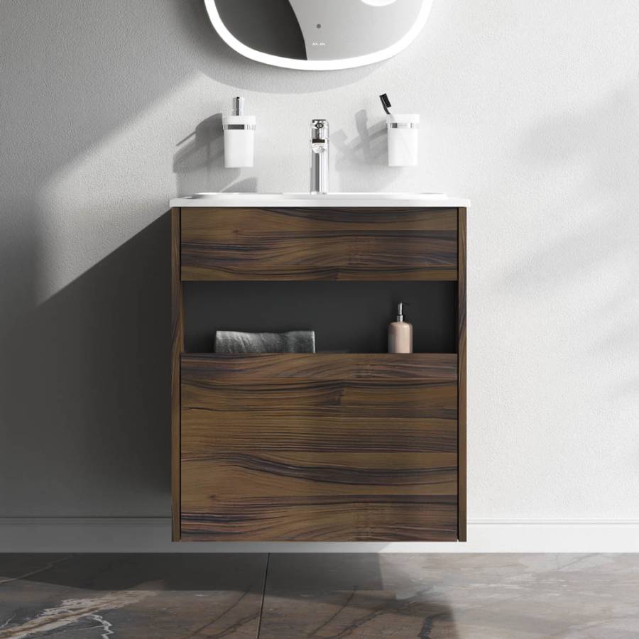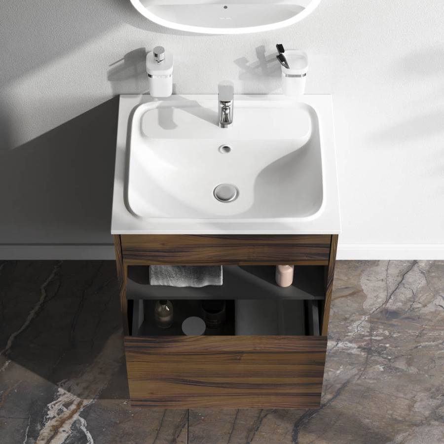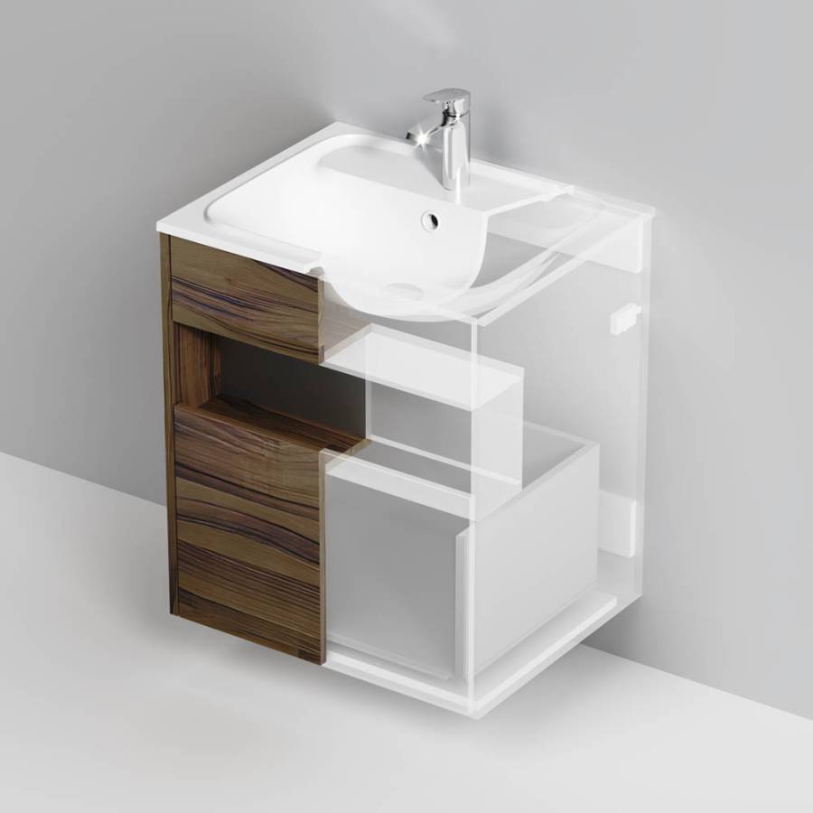 Удобный выдвижной ящик и вместительная открытая ниша позволяют хранить все необходимые средства под рукой. Невероятно мягкое открытие и закрытие благодаря направляющим скрытого монтажа с системой soft close._x000D_