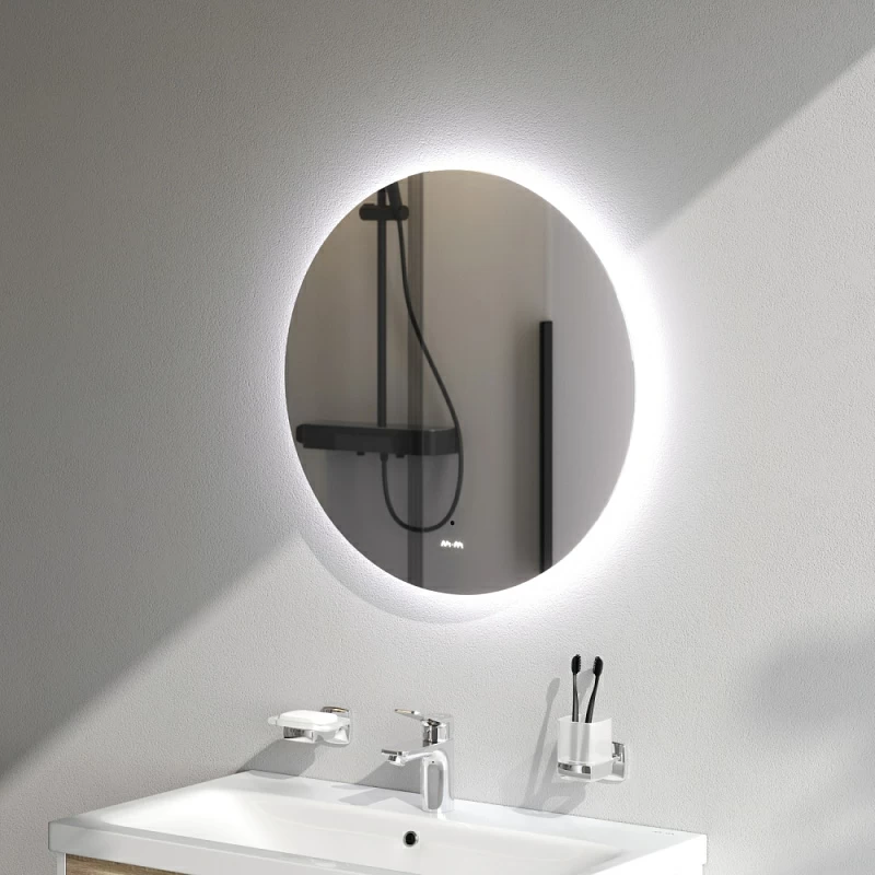 Зеркало с интерьерной LED-подсветкой. Стильное решение для ванной комнаты. Визуальный эффект парящего" зеркала добавляет интерьеру легкости и изящества. Подсветка естественного дневного цвета не искажает отражение.