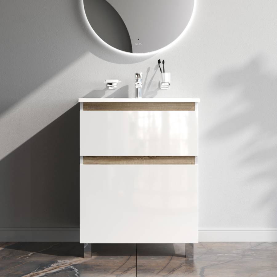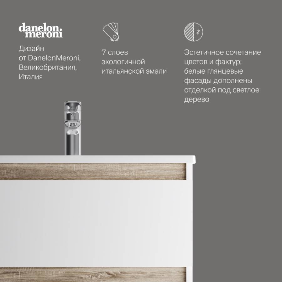 цвете Anthracite и имеет противоскользящее покрытие.? Встроенная керамическая раковина белоснежного цвета оснащена специальным бортиком для защиты от пролива воды за мебель._x000D_