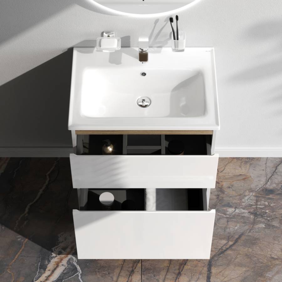 Функциональный органайзер в первом ящике позволит хранить необходимые косметические средства под рукой и в полном порядке. Внутреннее покрытие каждого ящика выполнено в современном _x000D_