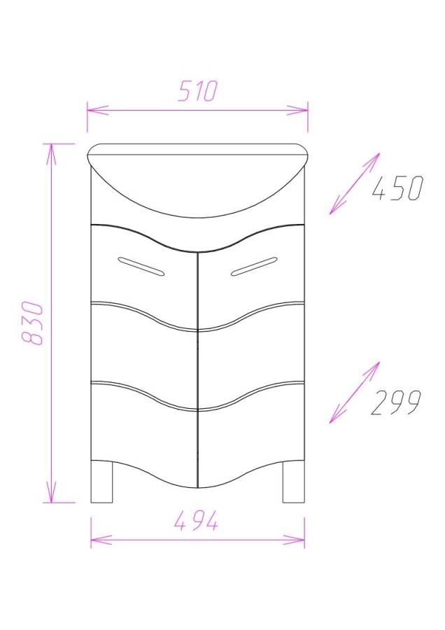 Размеры тумбы без учета раковины и ножек 49х30х75 см.