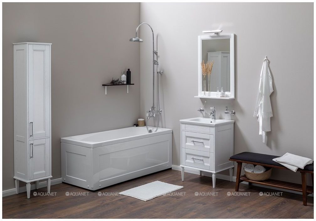 Подвесы для крепления шкафа к стене и белая матовая ручка - в комплекте.