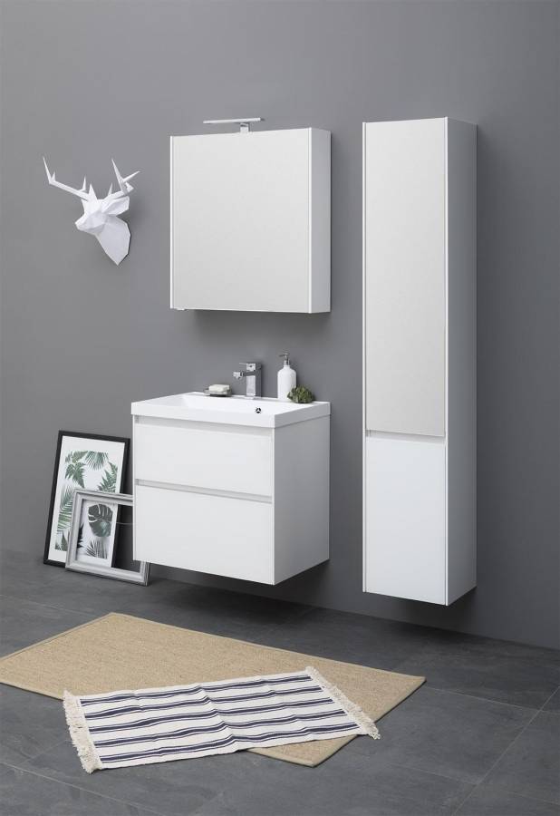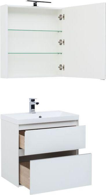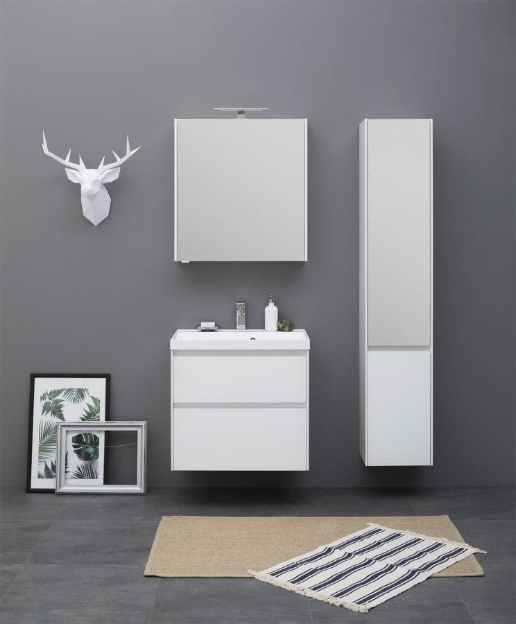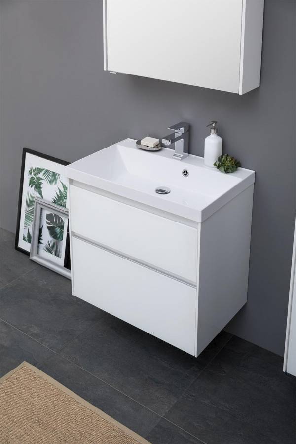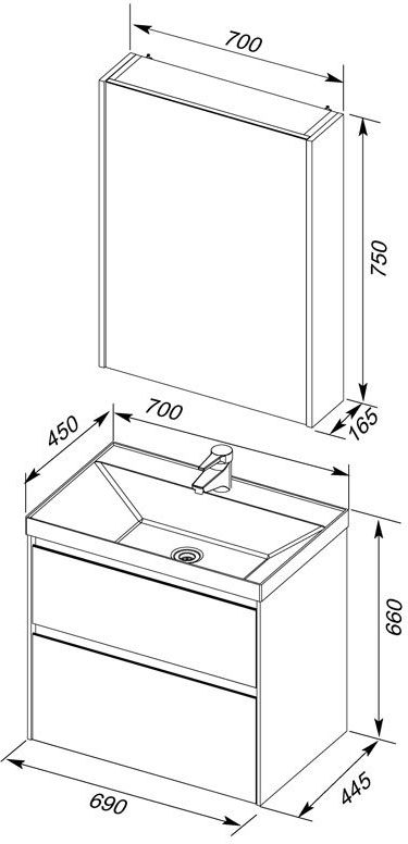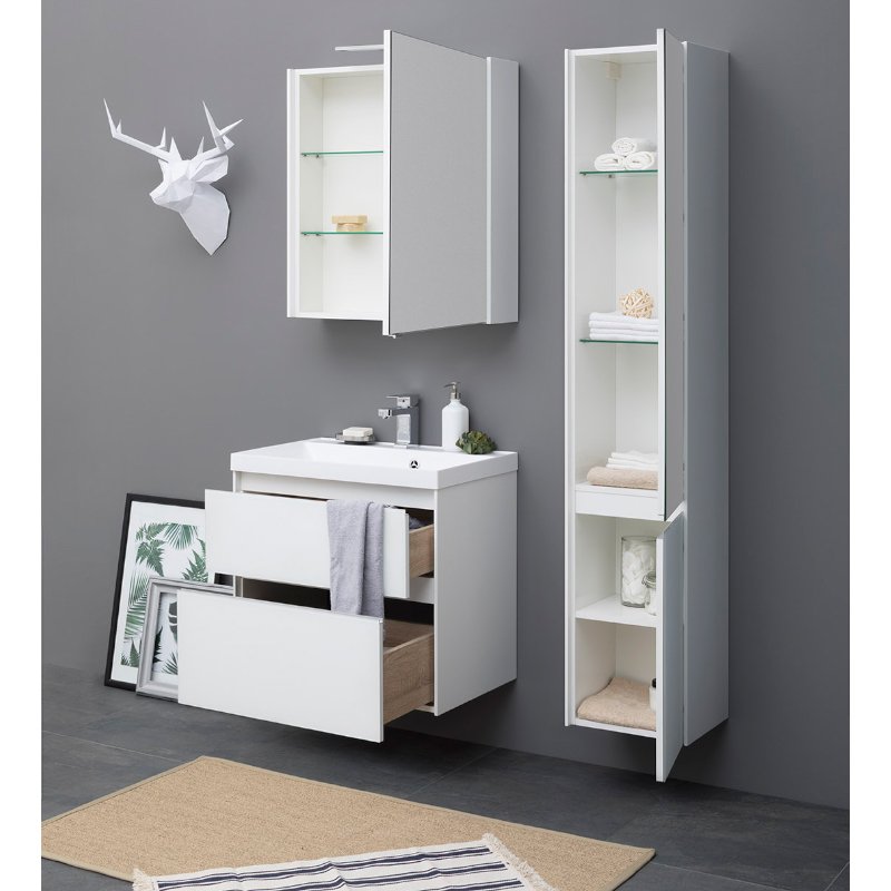 Производители позаботились о деталях. Ящики лишены выступающих деталей, ручки интегрированы в фасад. Тумбу можно из подвесного элемента преобразовать в напольный, просто докупив универсальные ножки. Раковина из литьевого мрамора «Орлеан» относится к числу накладных моделей и внешне выглядит как единое целое с тумбой. Ящики тумб оснащены направляющими Hettich Quadro c плавным закрыванием, более известным нам как доводчик.