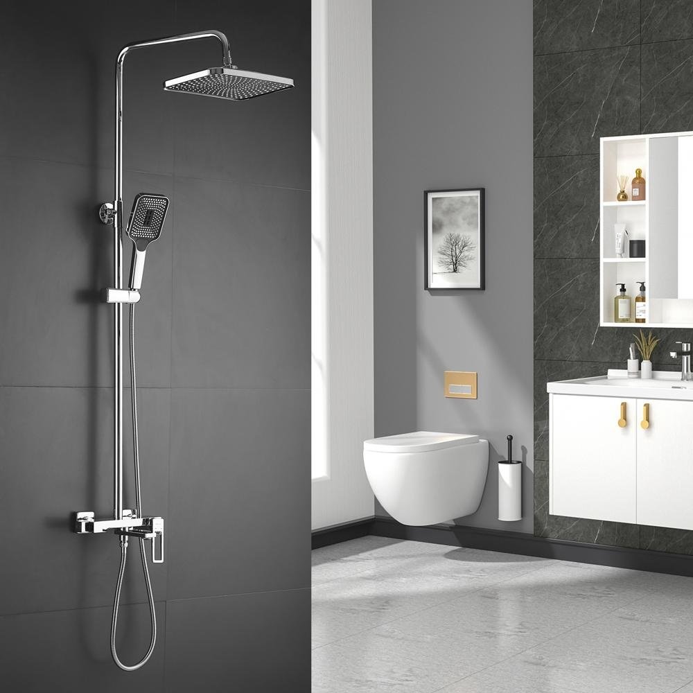 Смеситель, душевая стойка, верхний душ, душевая лейка, душевой шланг, держатель для душевой лейки, настенный держатель, отражатели, эксцентрики |
