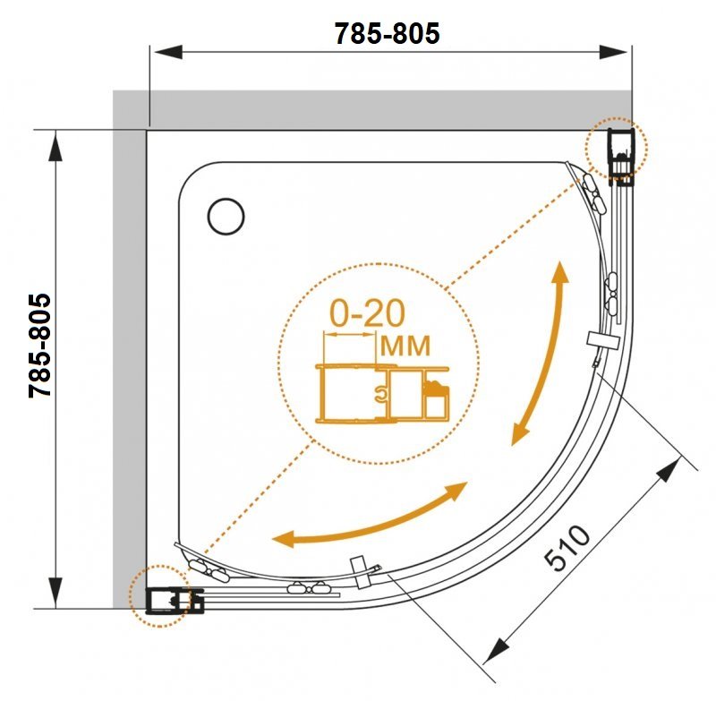 Напольный, на поддон, пристенный в угол |