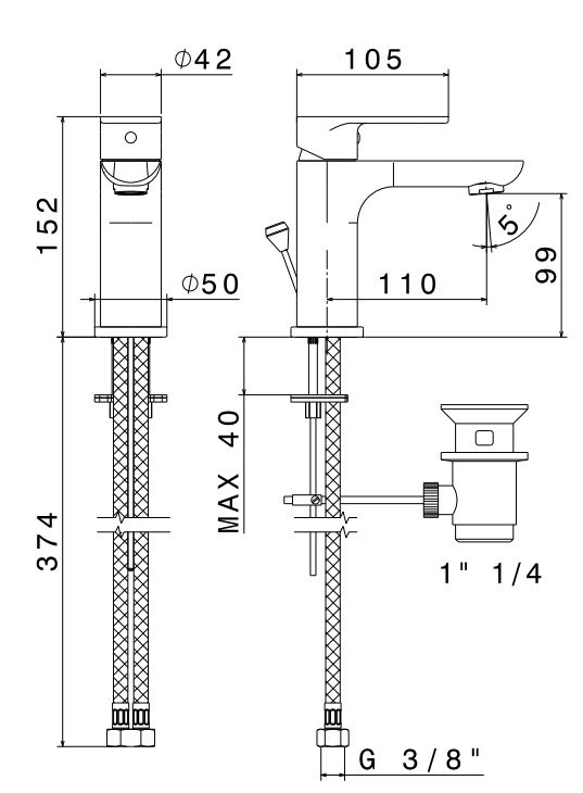 Аэратор, Гибкая подводка, Донный клапан, Крепления |