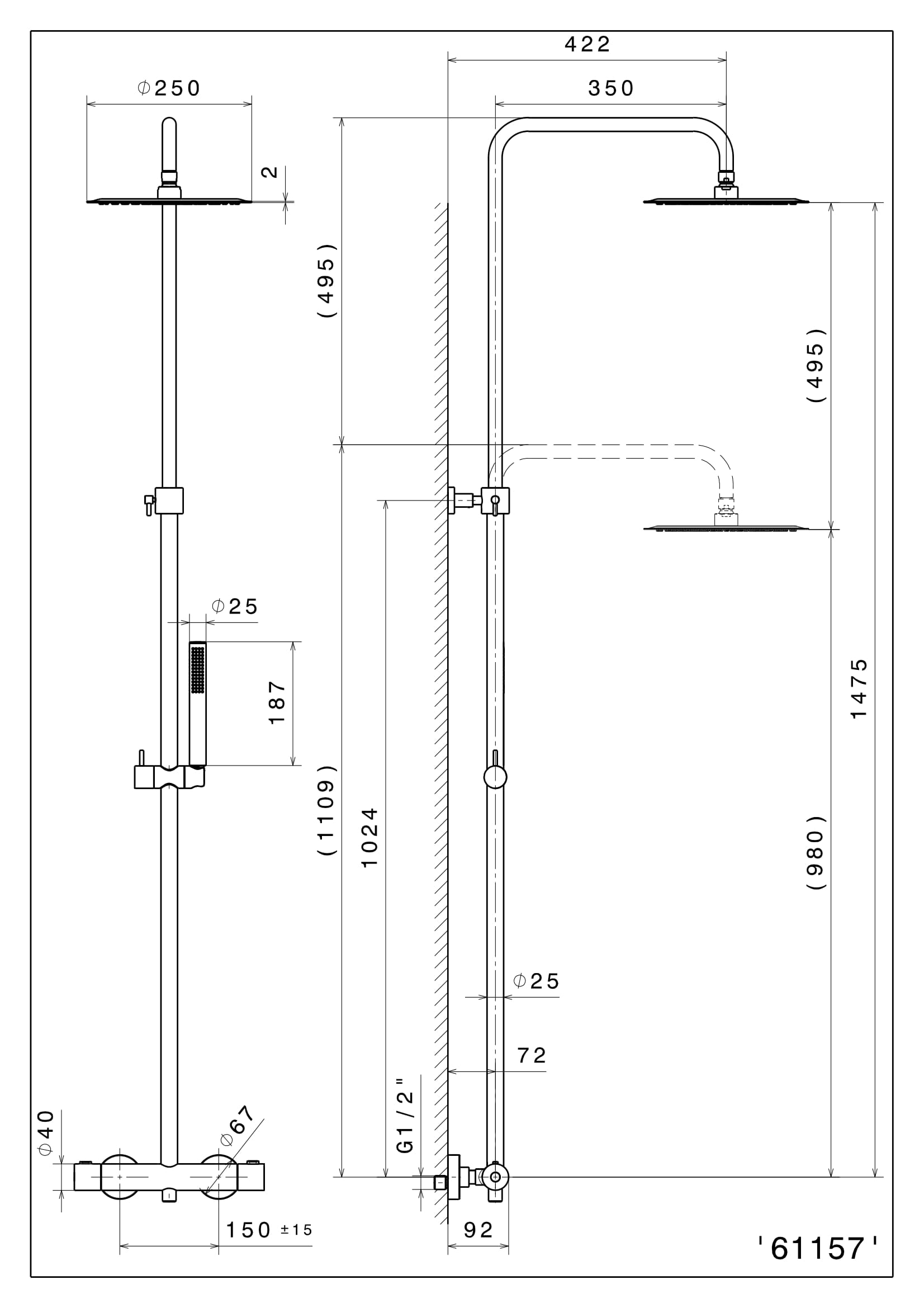 Размер верхнего душа мм.