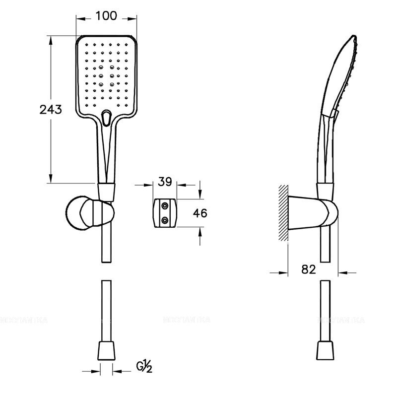 Верхняя лейка Кронштейн Ручной душ Излив Смеситель встроенный, внешняя часть Встроенный смеситель, внутренняя часть |