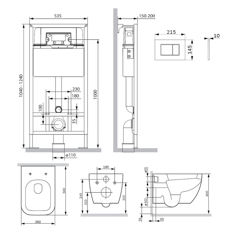 Звукоизолирующая прокладка, Инсталляция, Кнопка смыва, Комплект креплений, Смывной бачок, Сиденье |