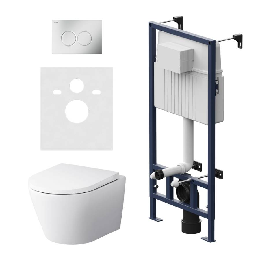 Вертикальные ребра жесткости в конструкции рамы обеспечивают дополнительную опору в месте Давления керамики На стену. Экономия пространства благоДаря узкому бачку 120 мм глубиной с качественной двухрежимной смывной арматурой. Заливной клапан с низким уровнем шума соответствует Классу II согласно европейского станДарта EN 14124. Укомплектован механической клавишей в цвете матовый Хром. В комплекте все необходимые патрубки и крепления а также прокладка между унитазом и стеной - звукоизоляция.