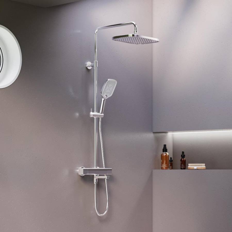 Специальное PVD-покрытие гарантирует чрезвычайную прочность душевой системы надежно защищая Хромовое покрытие от механических повреждений коррозии и потери цвета.