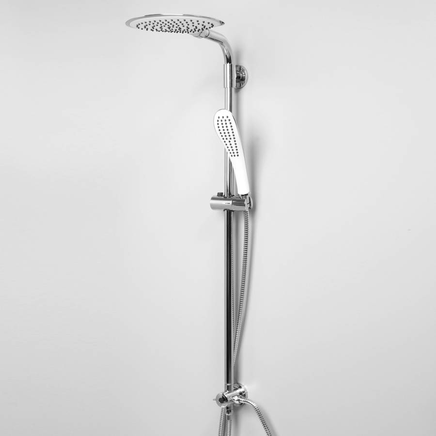 Душевая насадка, 246x190 мм, 110 форсунок, ABS-пластик, Стойка для душа, 25 мм, Лейка 1-функциональная с системой защиты от известковых отложений, Шланг металлический 1500 мм, подключение к лейке, Шланг металлический 600 мм, подключение к смесителю, Керамический поворотный переключатель, Регулируемый держатель лейки, Набор для монтажа |