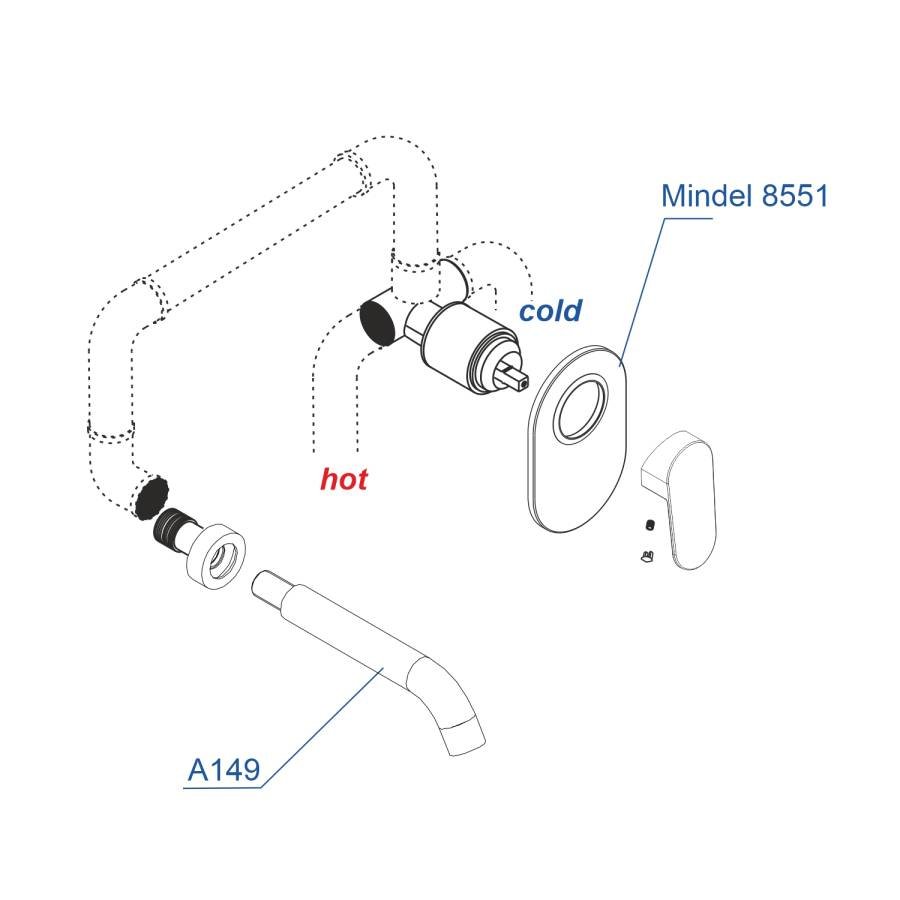 Смеситель для душа Mindel 8551, Настенный излив для ванны A149 |