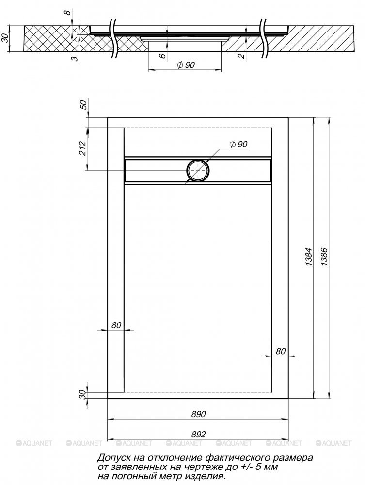 Поддон;Решетка слива из нержавеющей стали |