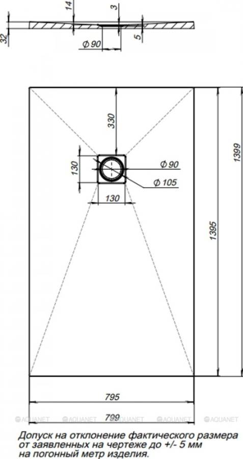 Поддон;Решетка слива из нержавеющей стали |