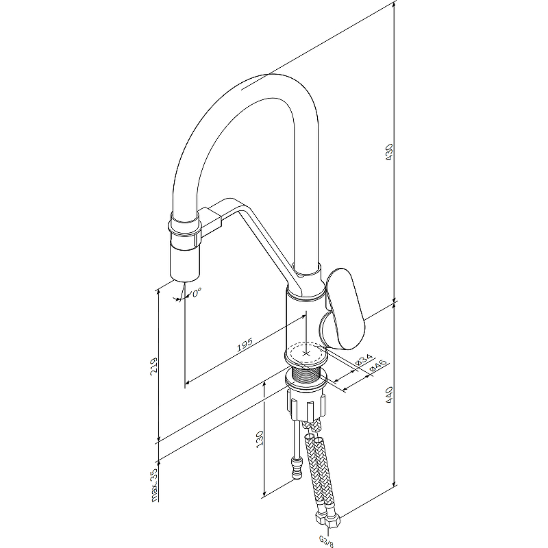 Высота излива см./мм.