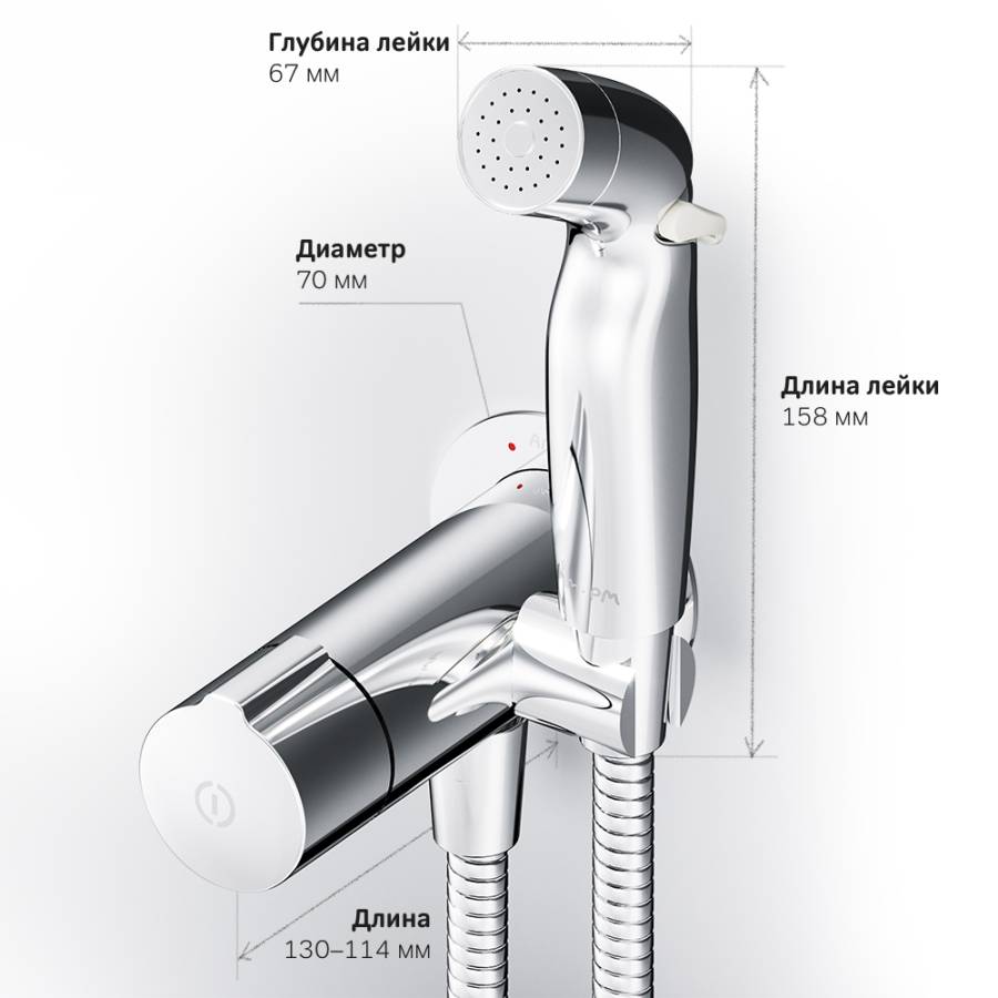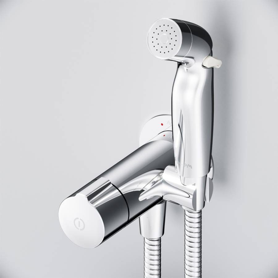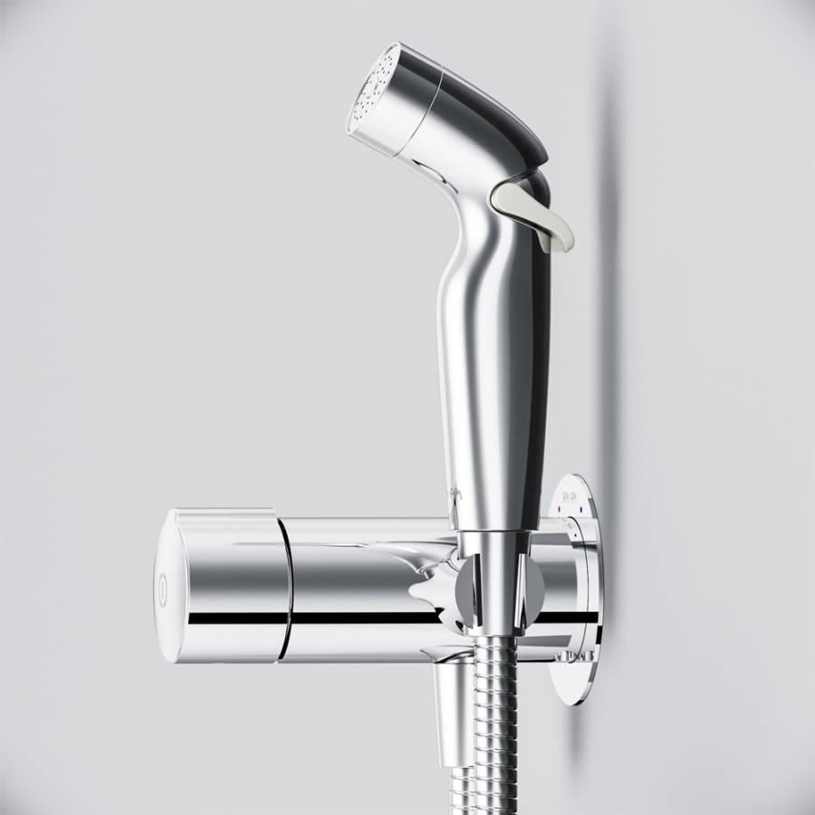Впервые на рынке гигиеническое решение с нажимным смесителем. Интуитивная понятная система управления TouchReel для включения/выключения смесителя одним нажатием. Новая эргономичная форма лейки идеально ложится в руку. Для максимального удобства мы разработали возможность регулировки воды прямо на лейке