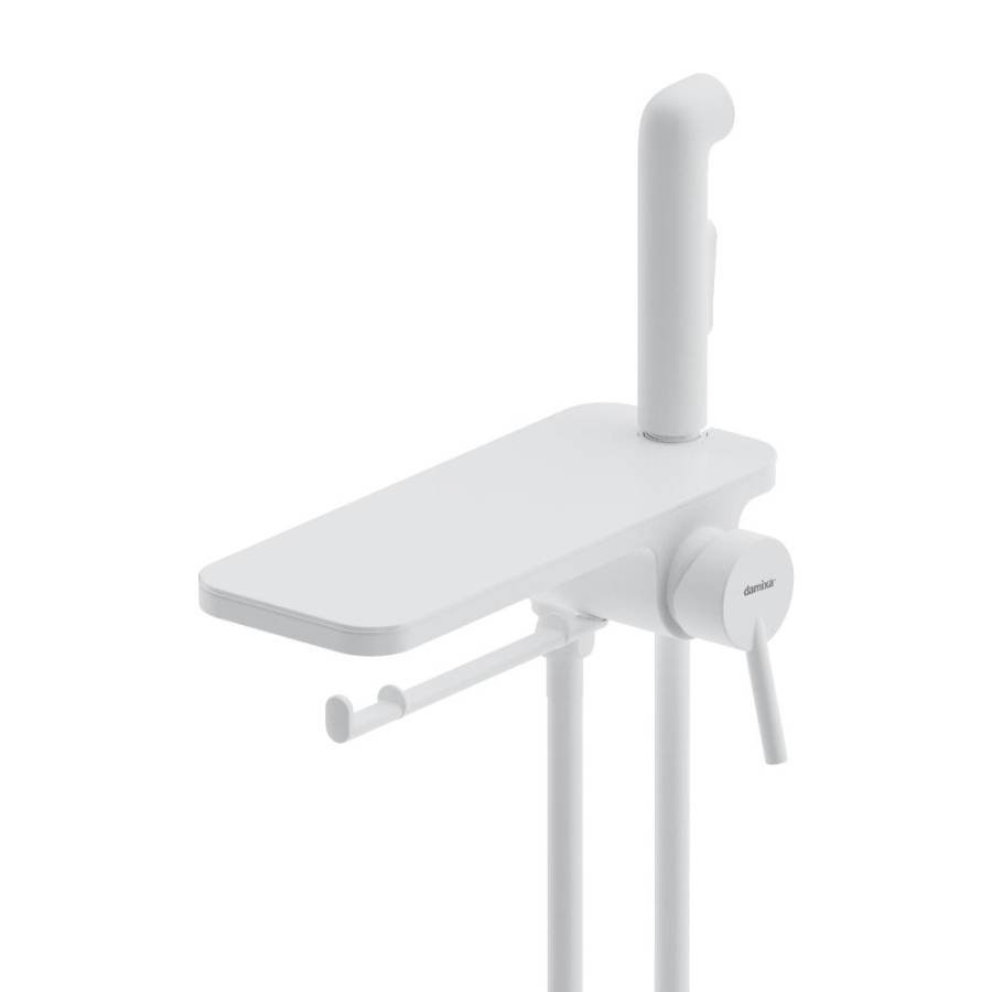 Самое практичное гигиеническое решение: смеситель оснащен удобной полочкой на которой поместится все что необходимо под рукой и держателем для туалетной бумаги.