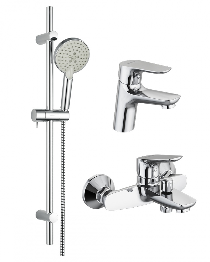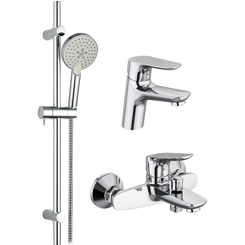 Душевой гарнитур, Смеситель для ванны с душем, Смеситель для раковины, Душевая штанга |