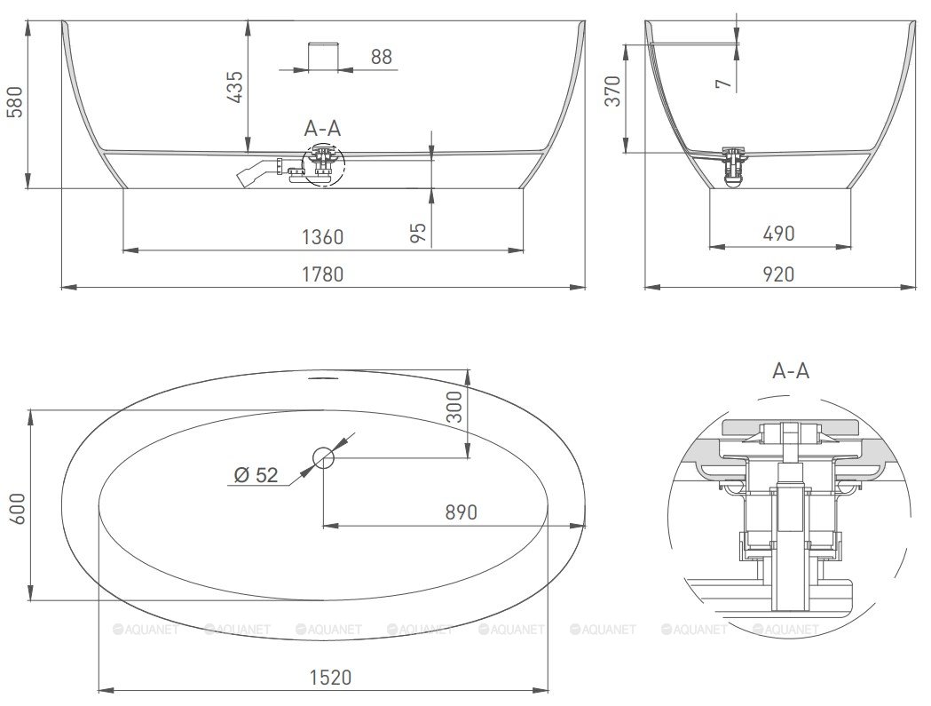 Слив-перелив интегрированный, сифон, донный клапан "Up&Down", цвет белый |