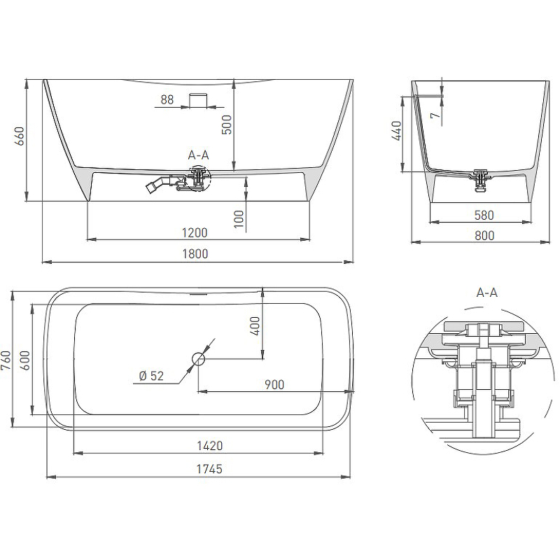Если вы любите стиль лофт — аскетичный и функциональный, то эта модель идеально вам подойдёт. AGATHA чаще всего производится в черном графитовом цвете. Погружение после насыщенного трудового дня в ванну AGATHA избавит от суетливых мыслей и поможет найти легкость, которая даст настоящее расслабление тела и духа. Благодаря форме с прямым дном и большим размерам AGATHA подходит для купания детей, в ней можно нырять и даже совершать короткие заплывы.