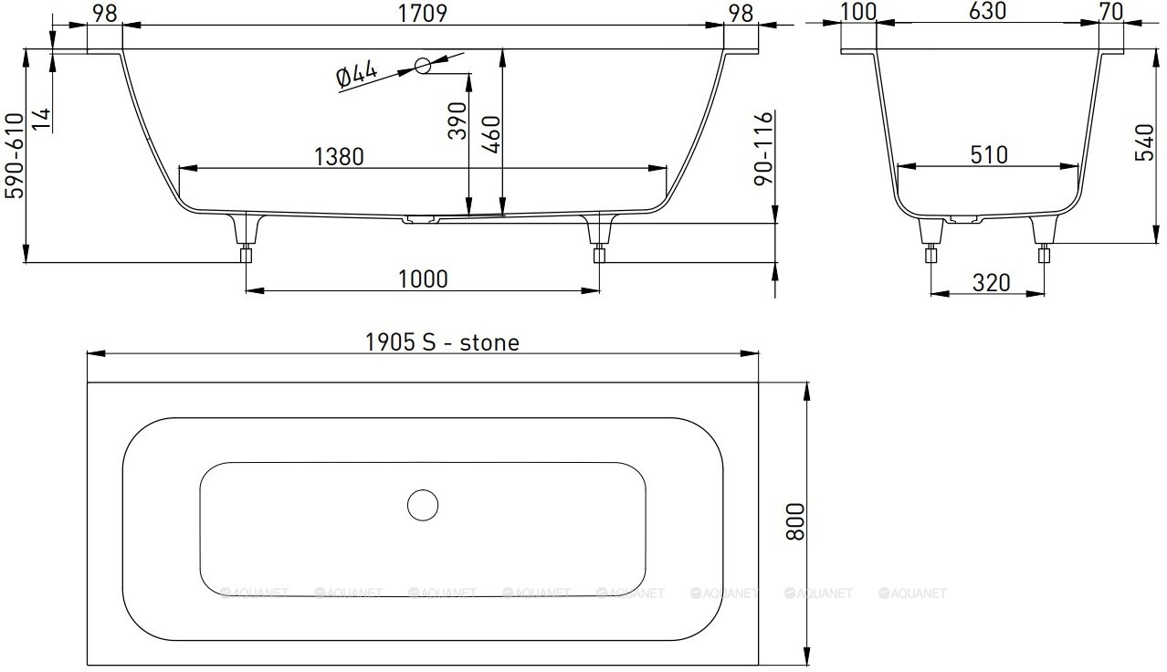 Ванна, регулируемые ножки до 2 см |