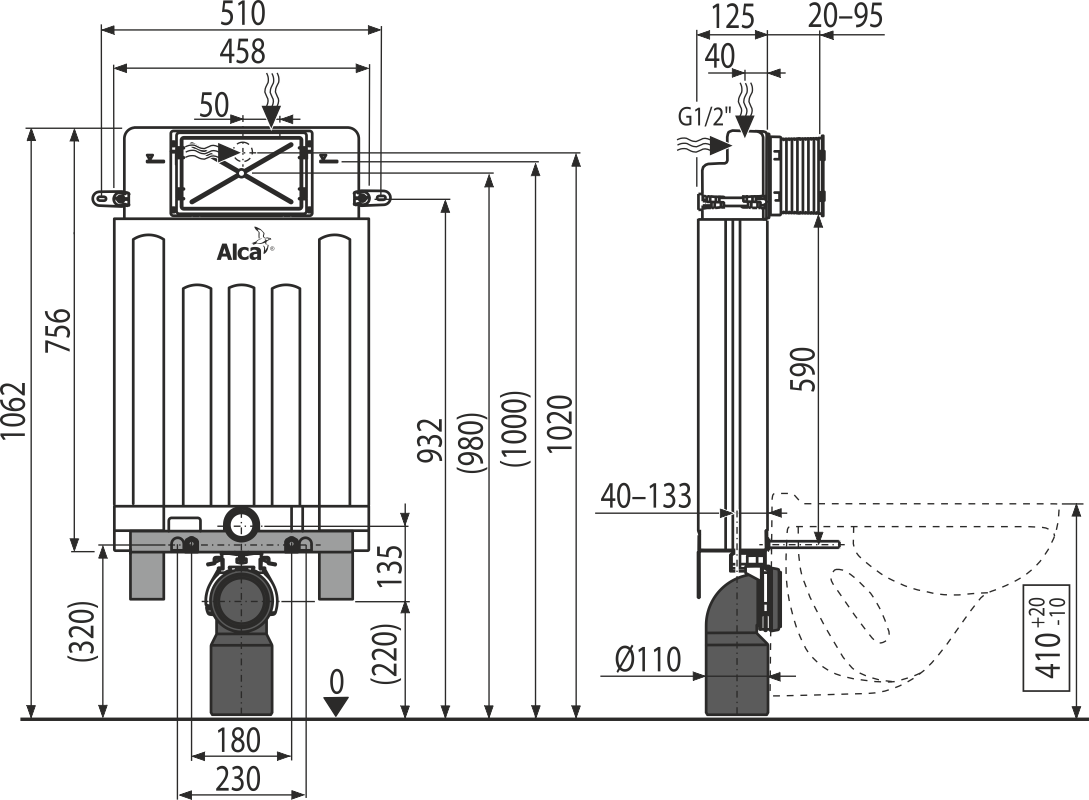 Монтажная высота 1062 мм;