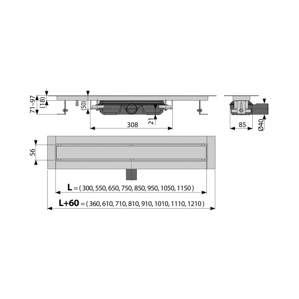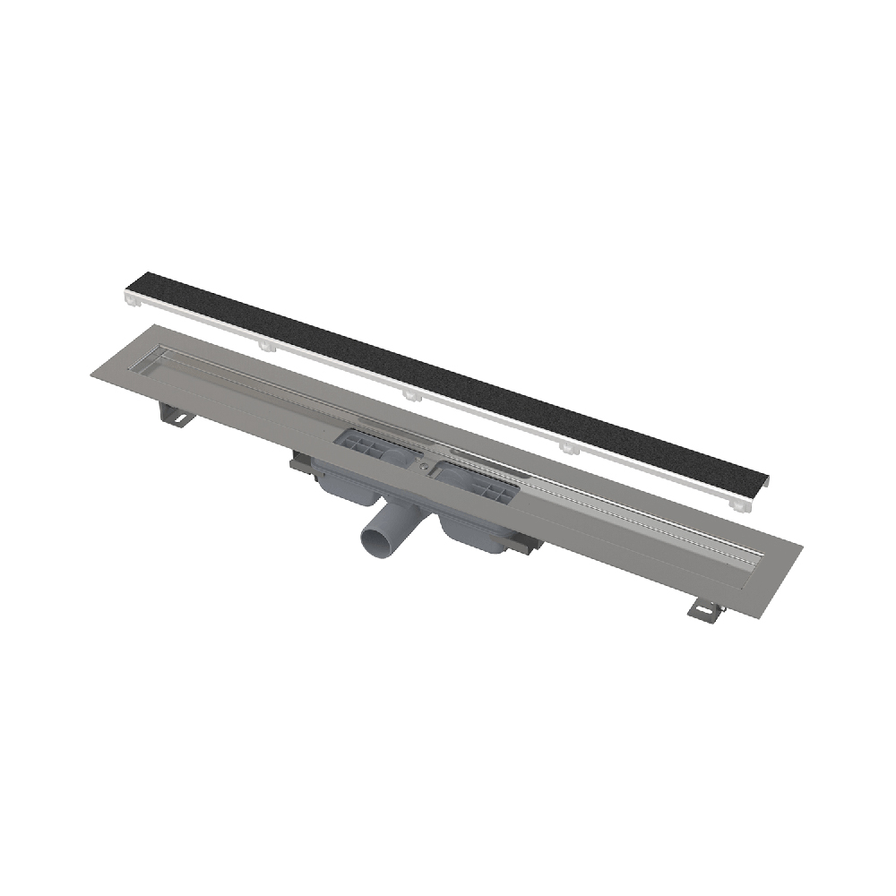 Водоотводящий желоб с сифоном Решетка для наклеивания различных типов напольных покрытий шаблон для резки плитки на решетку Монтажный комплект: шуруп Ø6×50 – 2 шт., дюбель Ø10 – 2 шт. Самоклеящиеся гидроизоляционные ленты Защитная пленка для воротника Монтажная крышка желоба - полистирол Крюк для демонтажа |