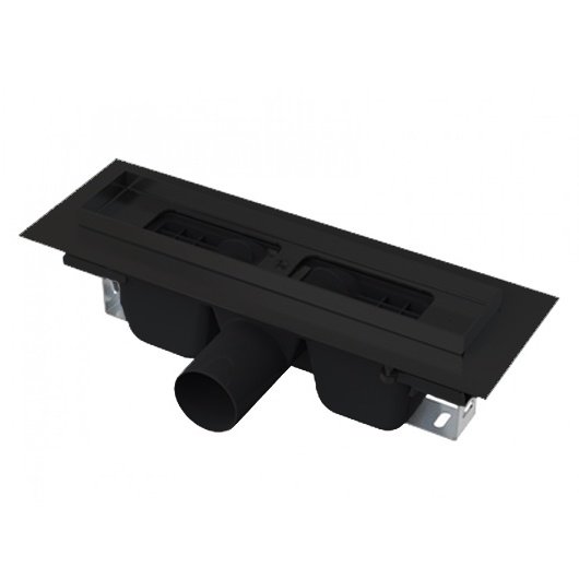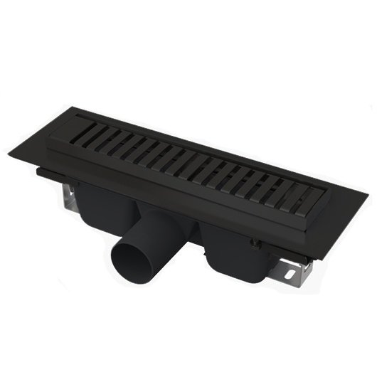 Водоотводящий желоб с сифоном; Монтажный комплект: шуруп Ø6×50 – 2 шт., дюбель Ø10 – 2 шт.; Самоклеящиеся гидроизоляционные ленты; Защитная пленка для воротника; Защитная пленка на вход в сифон; Монтажная крышка желоба - полистирол. |